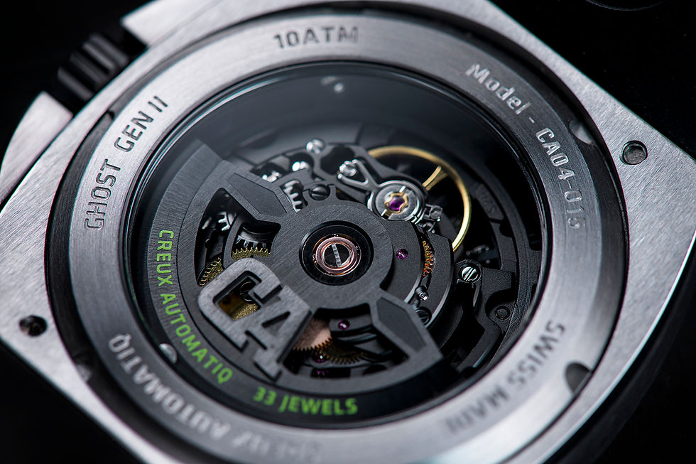 The name "Creux Automatiq" is inspired by the Creux Du Van canyon located in the Swiss region of Le Soliat. “Creux” is a French word which translates to "hollow". This became the inspiration for the first timepiece—The Ghost CA-01—because of its skeleton movement and dial.